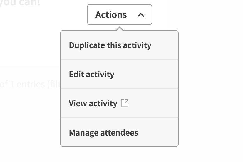 • You will be taken to your 'manage activities' page.